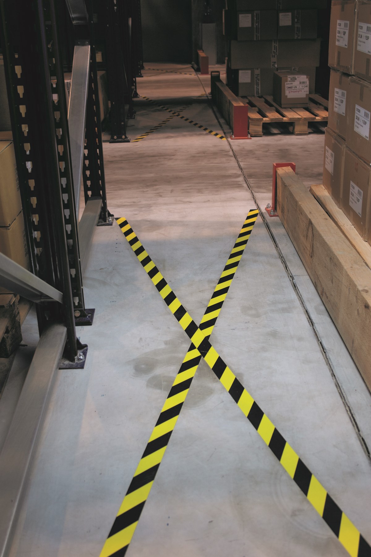 Speciellt gjord för säker, synlig och hållbar golvmärkning inomhus. Optimal synlighet tack vare högkontrastfärger. ISO-standardfärg hjälper till att färgkoda olika områden och markera säkerhetszoner.
