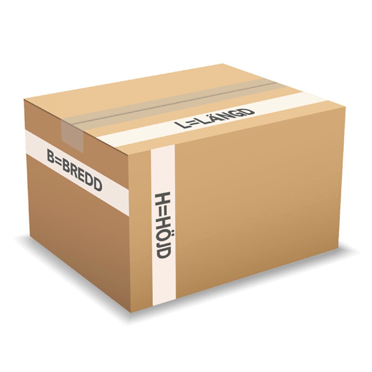 Med mötande ytterflikar i lock och botten, har FEFCO-beteckningen 0201 enligt europeisk standard. Marknadens vanligaste lådor i ett stort antal format och kvaliteter. Lätta att montera. Mått LxBxH.