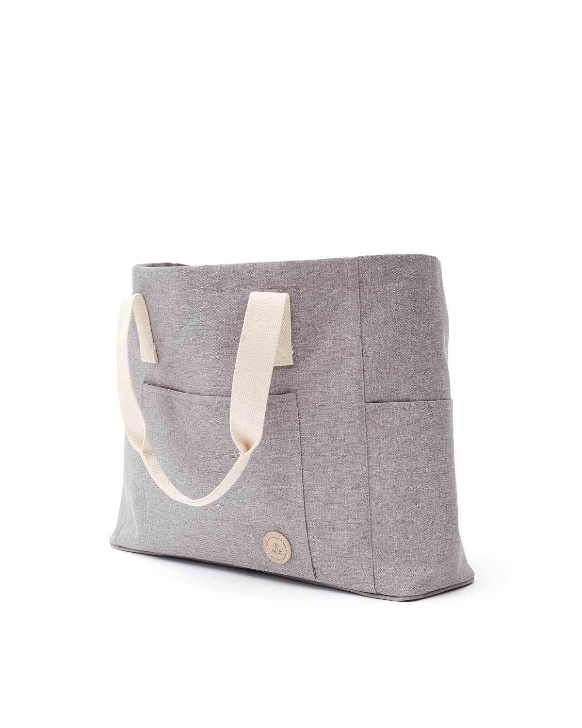 Väska tillverkad av RCS-certifierad återvunnen polyester. Lätt att torka av och de snygga detaljerna i bomull och konstläder ger väskan lite extra elegans.