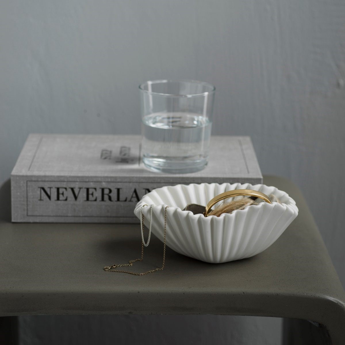 Charmig vit skål i keramik formad som en snäcka. Mått: 17 x 14 x 7 cm.