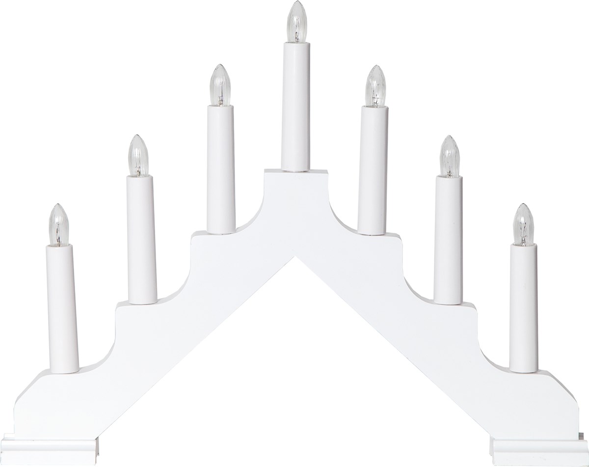 Traditionell, sjuarmad ljusstake. Höjd 30 cm och bredd 37,5 cm.