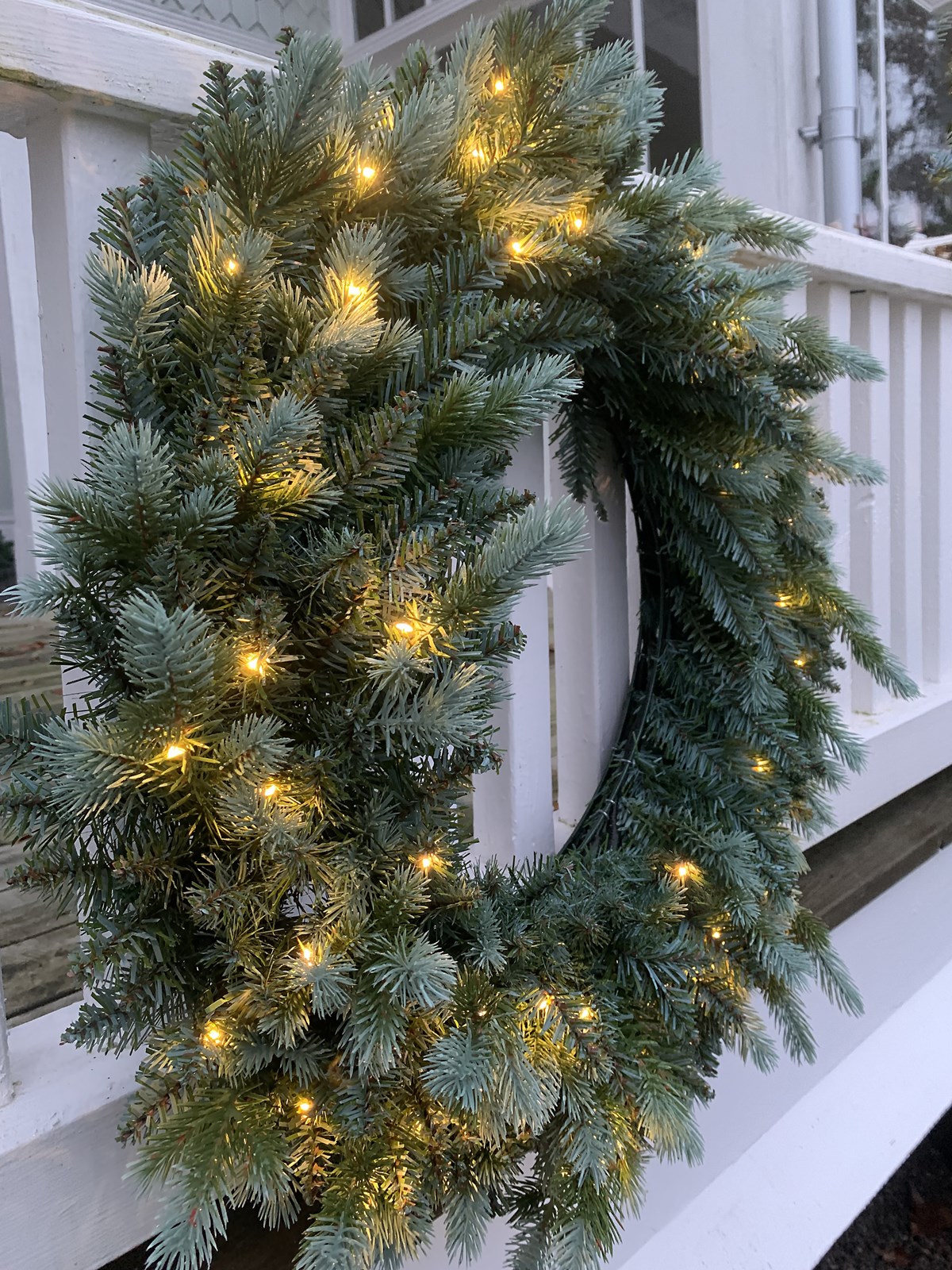 Kransen Greyland är ca 80 cm i diameter. Vackert grågrönt skimrande utseende. Med 60 små varmvita ljuspunkter lyser den upp vackert både inomhus och utomhus. Slingan kan både lysa konstant eller sättas med timer som lyser upp i 6 timmar och är släckt 18 timmar för att sedan tändas igen nästa dag. Den drivs av 3 st AA-batterier (medföljer ej).