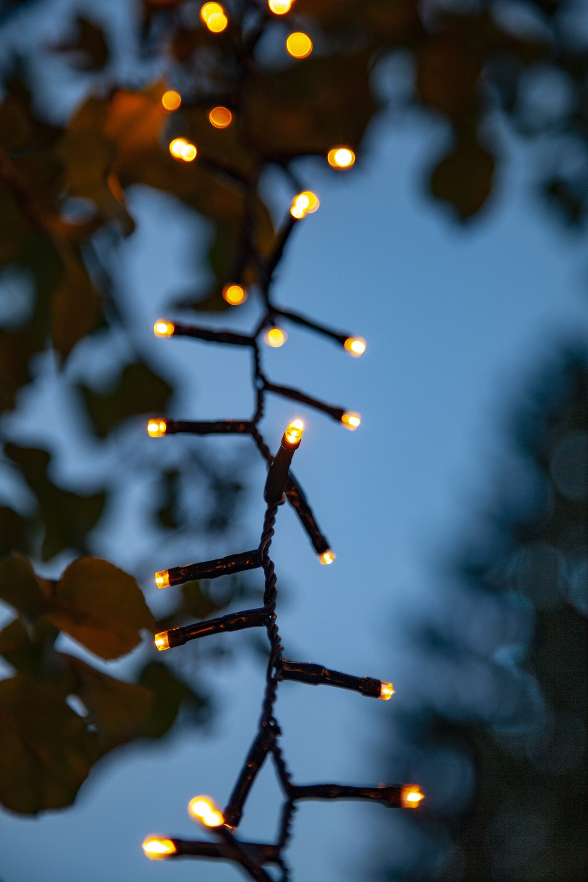 Ljusslinga med LED-lampor med vackert gyllene ljussken. Perfekt för din trädgård. Extra varmvit färg.