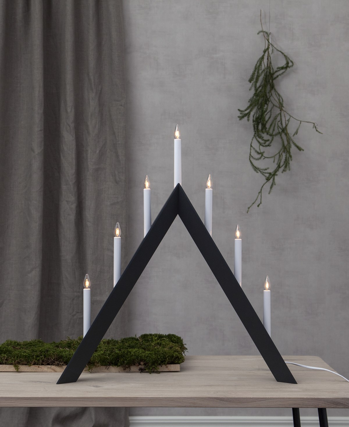 Modern träljusstake med fasade former. Skapar en härlig julstämning i både hem och offentlig miljö. Höjd 64,5 x bredd 60 cm.