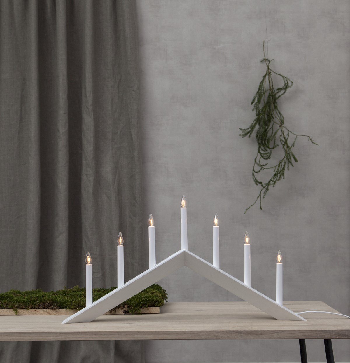Modern vit träljusstake, ljusstaken har fasade former. Skapar en härlig julstämmning i både hem och offentlig miljö. Mått: 36x69 cm.