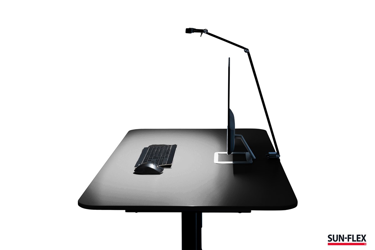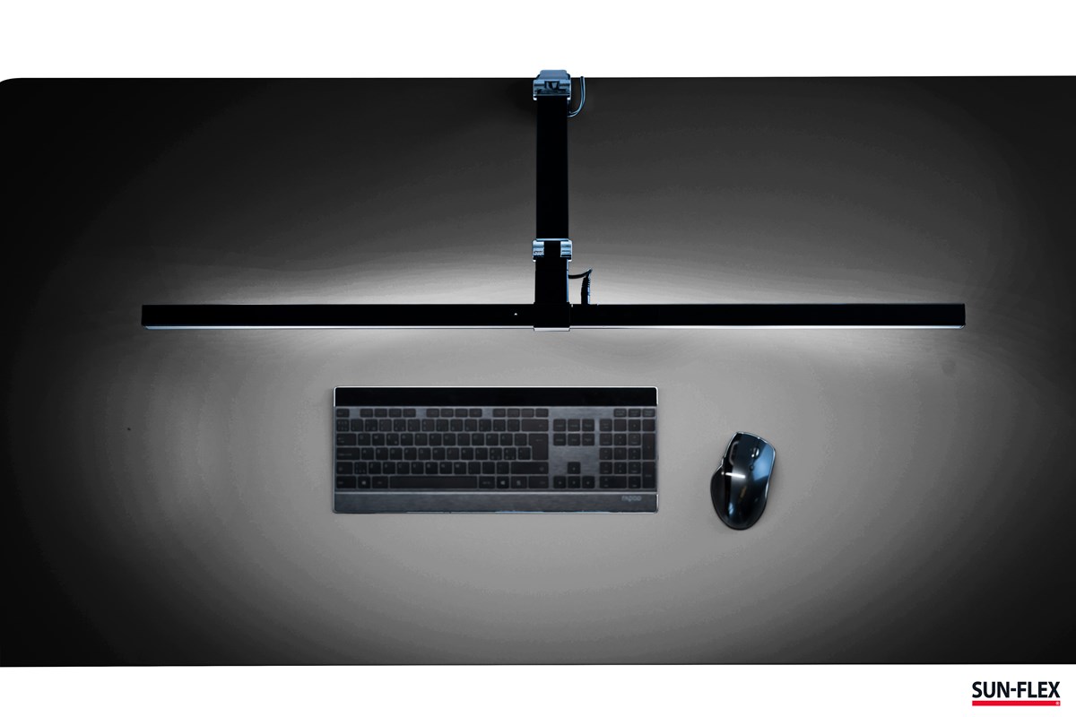 En toppmodern armatur som kännetecknas av stor flexibilitet i inställningar och modern design med fantastiska ljusegenskaper. Det breda lamphuvudet på 80 cm är utrustat med touchkontroller för steglös ljusdimmer, färgtemperatur, antireflexfunktion och automatisk omgivningsanpassad ljusstyrka. Tack vare det breda lamphuvudet lyser den upp din arbetsplats utan hjälp av takarmatur eller punktbelysningar. Klämfäste.
