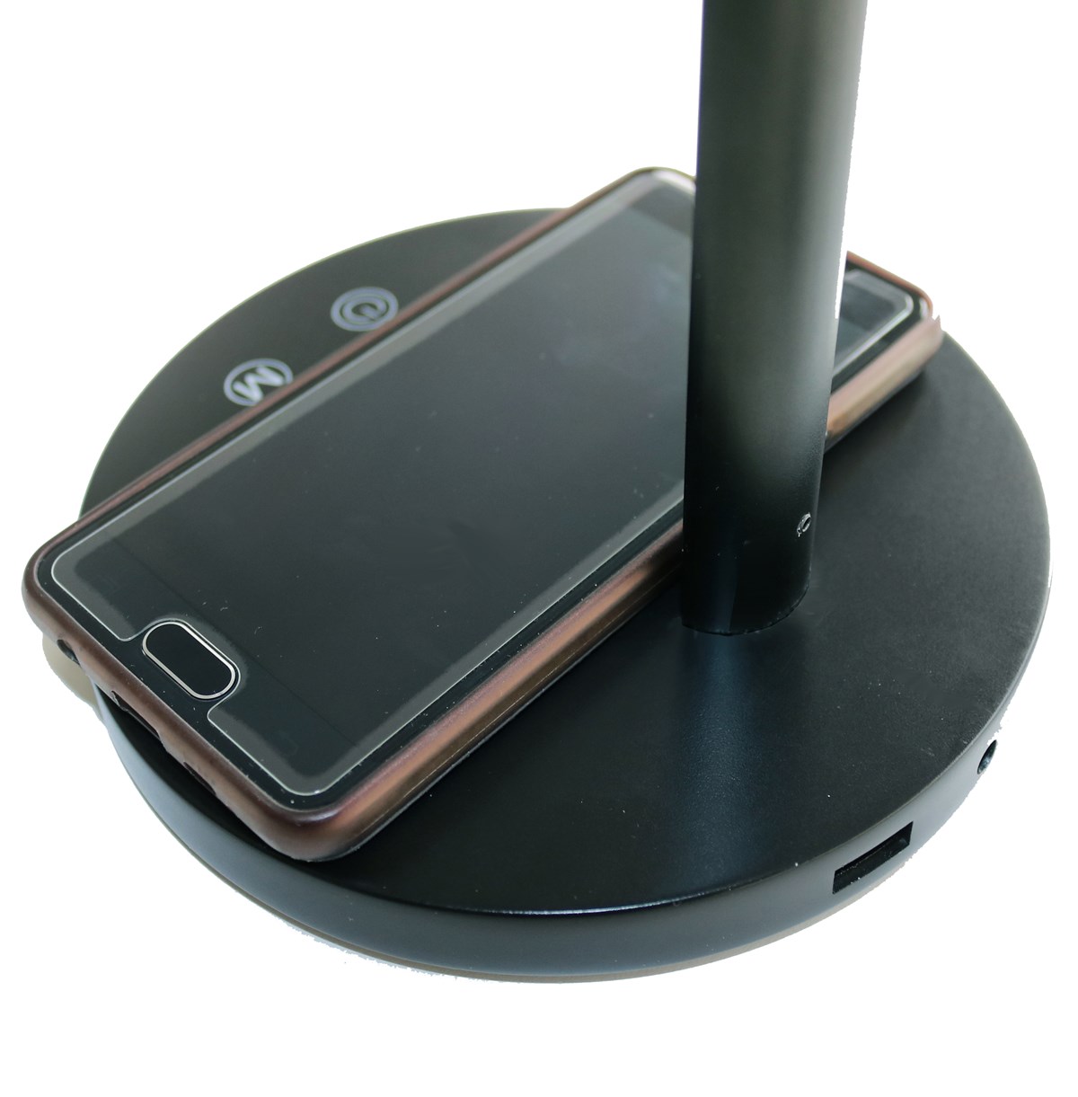 Skrivbordslampa med högeffektiv 7W LED-belysning. Touchströmbrytaren kan ställa in ljusintensiteten i fyra nivåer men även justera belysningsfärgen i tre nivåer för arbete, läsning eller vila. USB-port och trådlös induktionsladdare. Armlängd: 42 cm, lamphuvud: 41 cm. 2 års garanti.