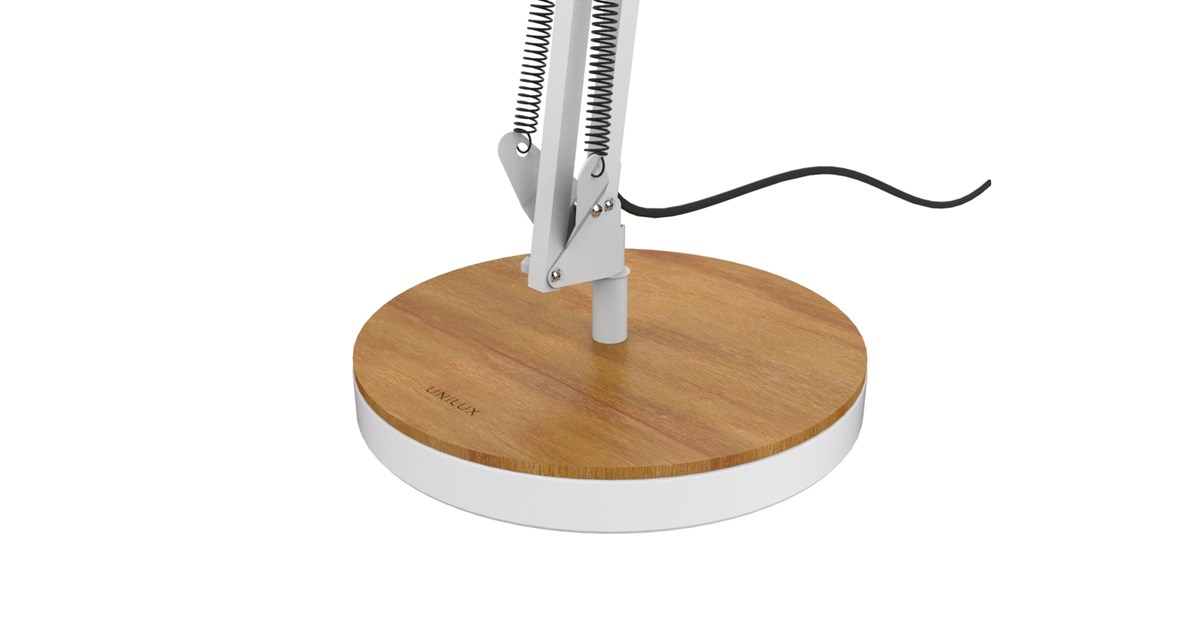 En modern version av den traditionella arkitektlampan. Producerad av återvinningsbar aluminium och bambu vilket bidrar till bevarande av naturresurser. Dubbelledad arm som möjliggör rörelser i alla riktningar och ljuset är högkvalitativt och flimmerfritt. Ljuskälla i LED med en styrka på 12,6 watt. Brinntid 30 000 timmar. Bordsfot och klämma. 2 års garanti.