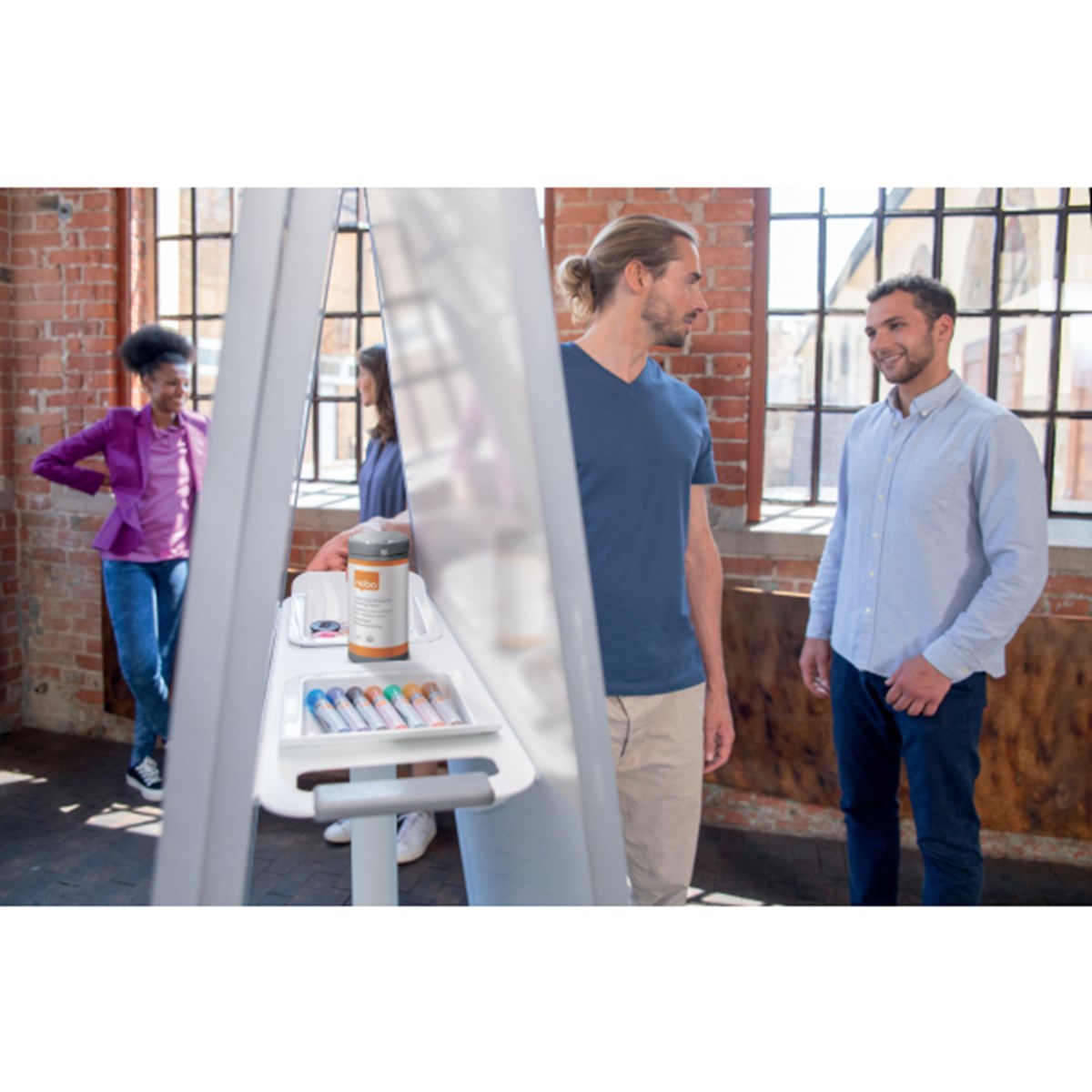 Dessa rengöringsservetter för whiteboard är idealiska för att hålla din whiteboard i perfekt skick. Perfekt för kontor, skolor och hemmakontor, detta paket innehåller 100 förfuktade biologiskt nedbrytbara våtservetter för dagligt underhåll. Tuff mot smuts och fläckar på alla whiteboardytor, dessa våtservetter kommer i en behållare tillverkad av 100% pre-consumer återvunnen plast. Det lätta gångjärnsförsedda locket säkerställer snabb åtkomst och förhindrar uttorkning, medan den perforerade kanten tillåter dispensering med enkel avtorkning. För bästa resultat, använd med en Nobo whiteboard-sudd för att hålla din whiteboard i toppskick.