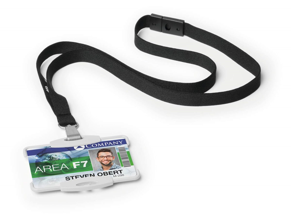 ID-korthållare i öppet utförande för ett ID-kort/passerkort. Kan användas i stående eller liggande format och kan kombineras med klämma, textilhalsband eller kedja. Av återanvänd plast i Blue Angel-kvalitet. Innermått: 54x87 mm.