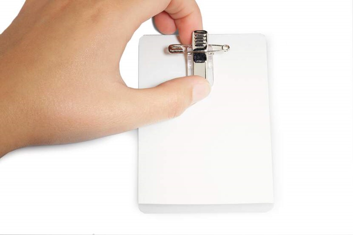 Namnskylt självlaminerande 54x90 mm med nål/klämma 25/fp