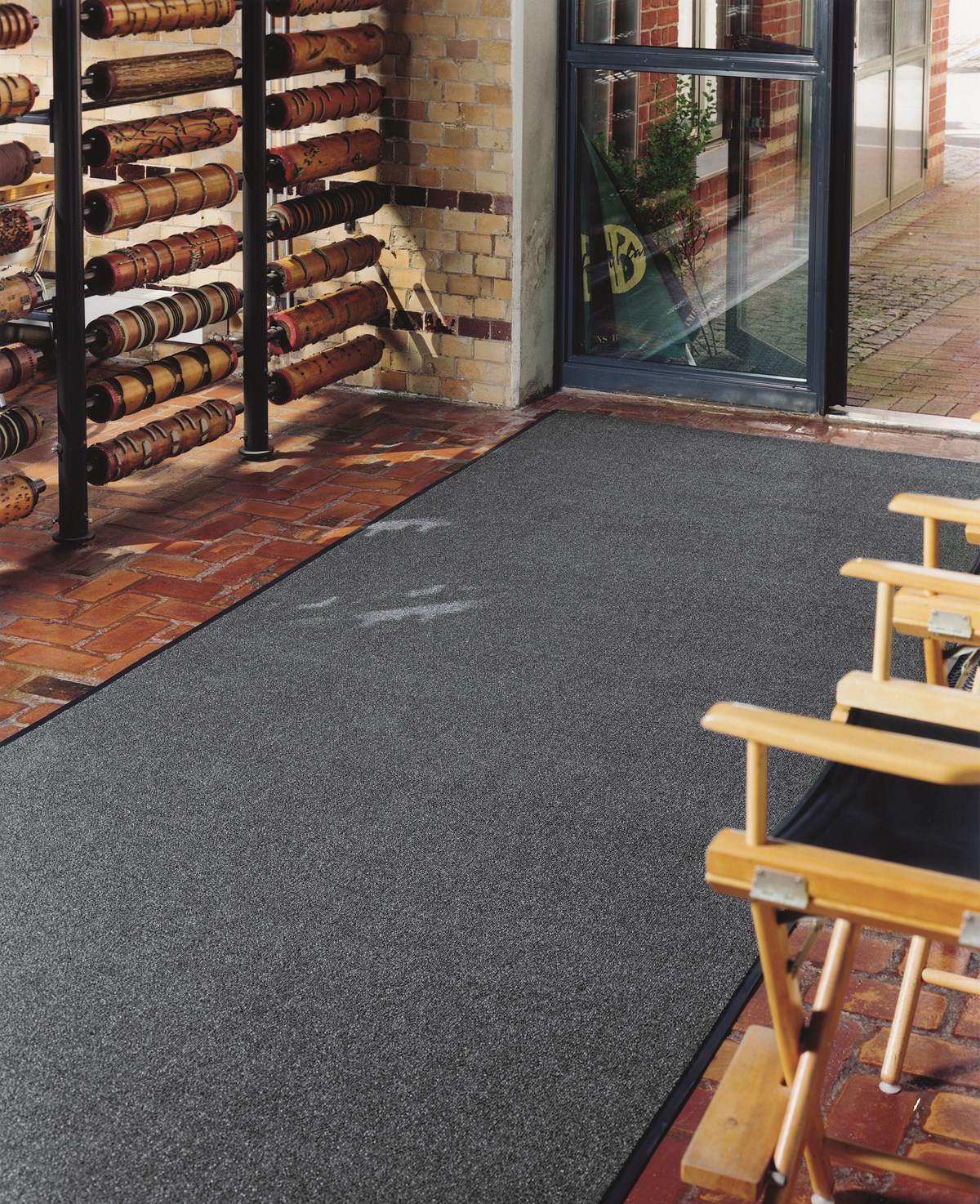 En slitstark matta som både skrapar av grov smuts och absorberar väta med en kombination av textila, mjuka och kraftiga, styva trådar (50 % PET och 50 % polypropen). Skaka, dammsug eller spola av. Baksidan är tillverkad i en kvalitet som är mjuk och följsam men samtidigt mycket slitstark för att passa vårt kalla nordiska klimat. Mattorna har en svart kantlist för att minska snubbelrisken. För inomhusbruk. Mått: 90 x 150 cm. 7 mm tjock. Kan även beställas i löpmeter och i andra storlekar.