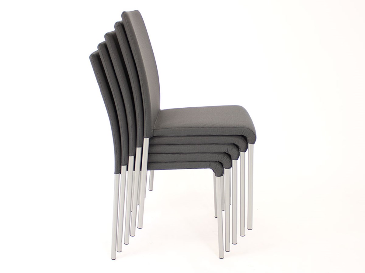 Med vattenavstötande tyg kan du spilla dryck och lätt torka av med fuktig trasa. Ger samma ombonade känsla som ett tyg men med samma funktion som konstläder. Passar bra i lunch- och fikarum, i skola, som besöksstol eller i produktionsmiljö. Stapelbar. Mått: H90 x B41 x D51 cm. Sitthöjd 45 cm.