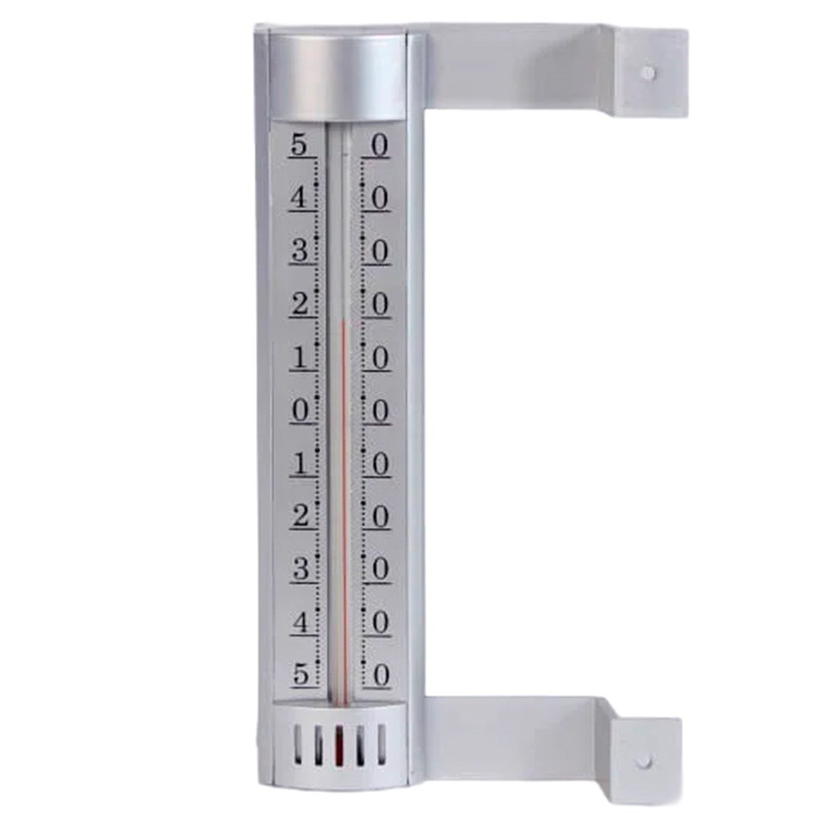 Termometer för utomhusbruk. Monteras utanför fönstret. Möjlighet att skifta plats på monteringsarmarna möjliggör uppsättning åt både vänster och höger.
