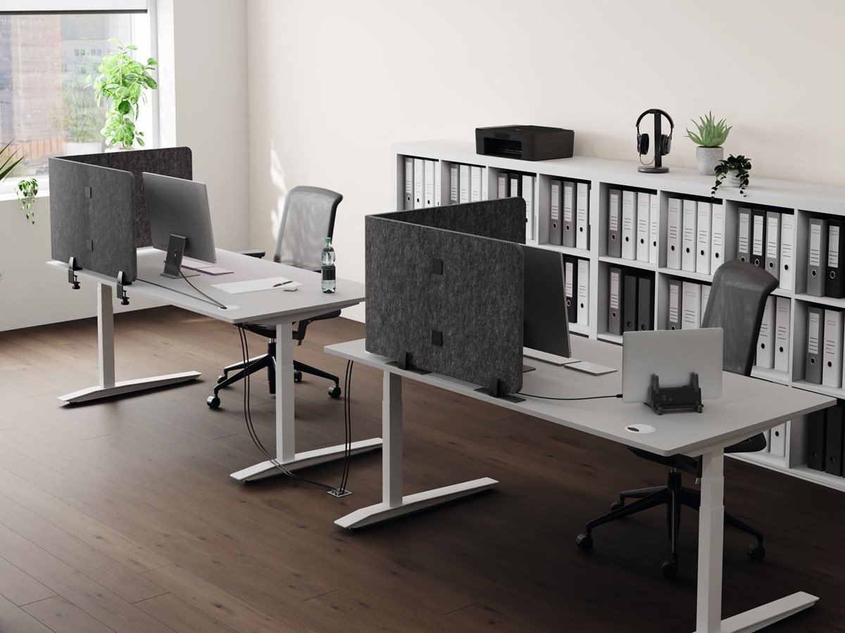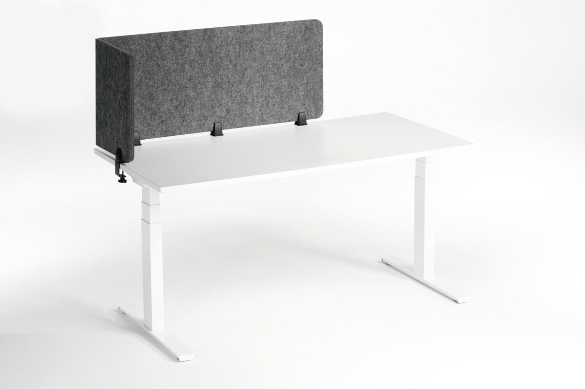 Vikbar bordsskärm av återvunnen PET-filt för effektiv avskärmning och ljuddämpning av arbetsplatsen. Väldigt flexibel skärm som kan anpassas individuellt tack vare steglöst justerbara vinklar. Bordsskärmen kan användas i hela sin längd eller vikas på 4x40 cm för längd 1,60 m eller 2x60 cm för längd 1,20 m. Ger en personlig avgränsning av arbetsplatsen och bättre akustik som minskar störande ljud. Flera olika möjligheter för montering gör att den kan anpassas efter behov. Passar för höj- och sänkbara bord: står stadigt och insynshöjden på 50 cm över bordsskivan bibehålls.