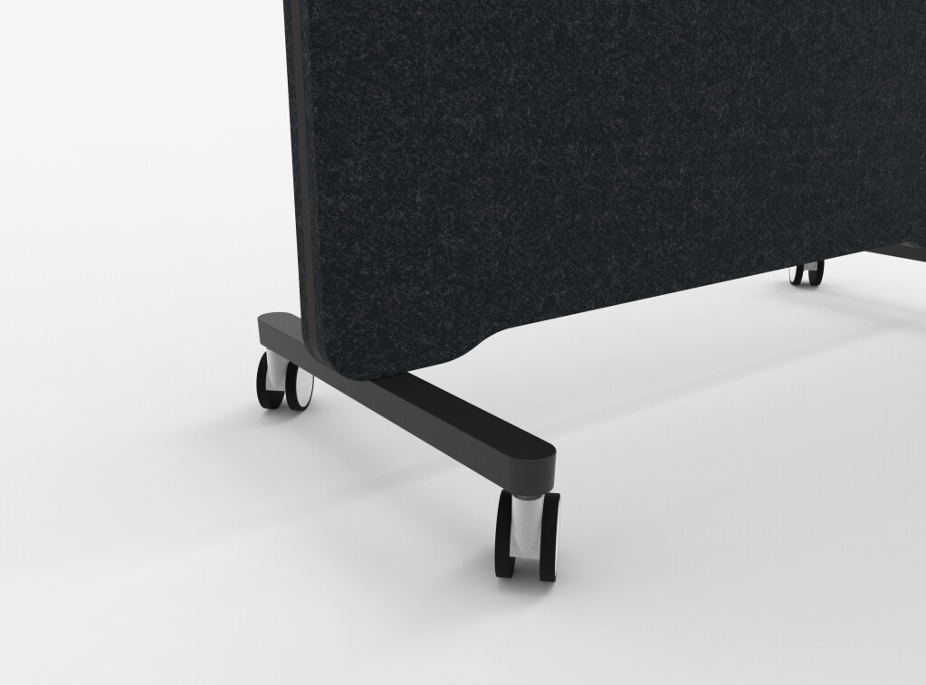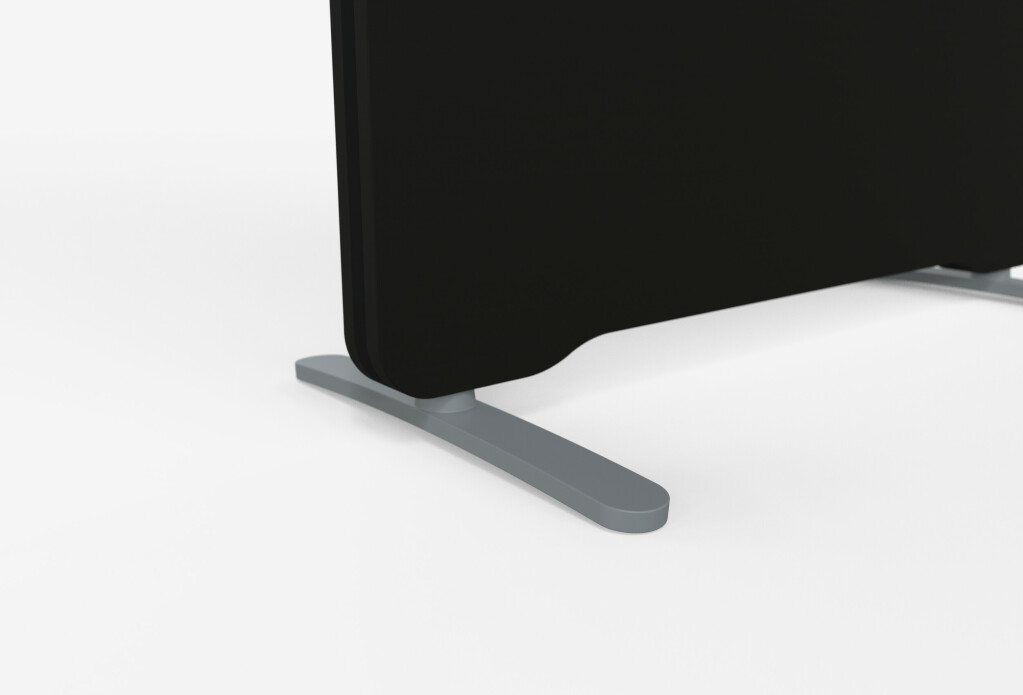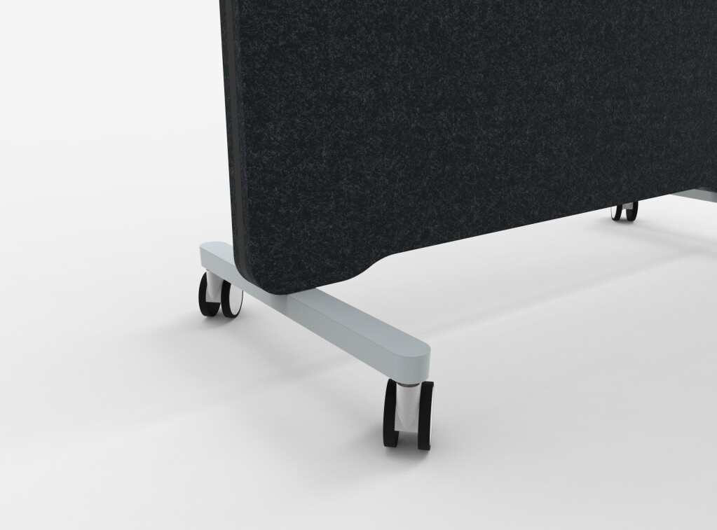 Golvskärm med funktionell design och ljudabsorberande egenskaper med grå kantlist av gummi. Skärmarna är fyllda med 40 mm återvunnen polyester som effektivt absorberar ljud. De inbyggda magneterna gör skärmarna smidiga att koppla ihop och enkla att flytta. Välj till ställbara fötter. Design HALLEROED.