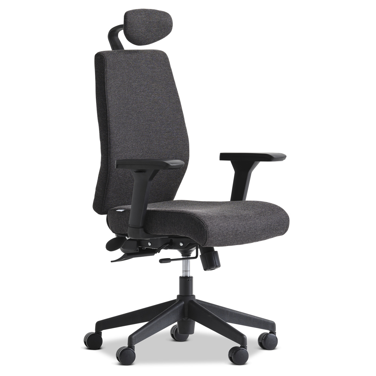 Adenau är en riktigt bekväm arbetsstol. Utvecklad för att kunna användas hela dagen på kontoret. Funktioner så som justerbart nackstöd, justerbara armstöd, sittdjup, synkron gunga låsbar. Justerbar höjd med extra hög sitthöjd. Svankstöd justerbart med pump. Sitthöjd: 45-58 cm. Höjd: 117-130 cm, bredd: 63 cm, djup 70 cm.