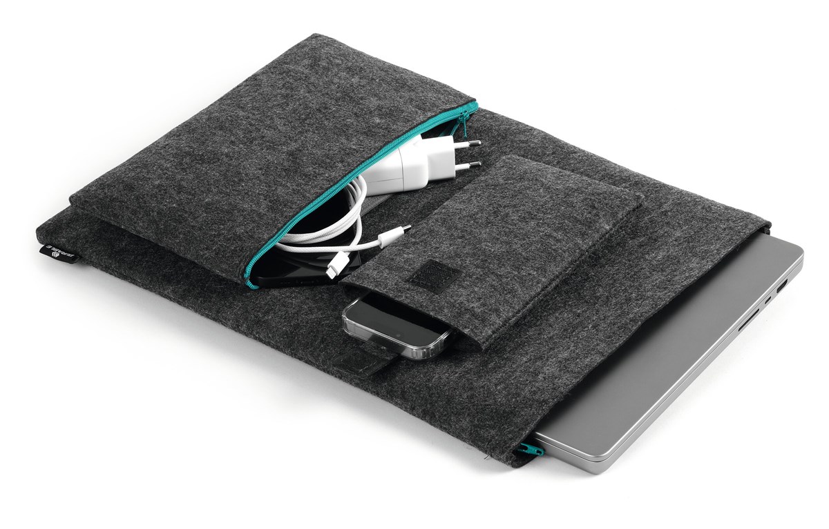 Lätta och smidiga att packa ner i ryggsäcken eller väskan och minskar risken för repor och skador, samt håller ordning och reda på dina saker. I detta set ingår en laptop sleeve för laptops upp till 16,4"", och ett tillbehörsetui, som båda stängs med en dragkedja av hög kvalitet. Dessutom ingår även ett mobiltelefonfodral som stängs med kardborrband. Fodralen och etuiet kan sättas ihop med hjälp av tryckknappar - allt blir en enhet!