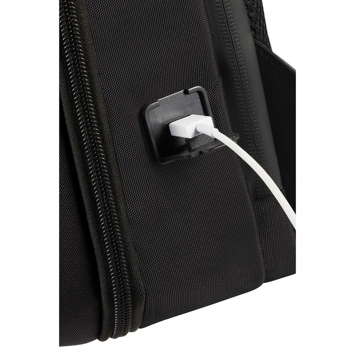 Minimalistisk ryggsäck tillverkad i 100% Recyclex®, ett material som görs av 100% återvunna PET-flaskor. Massor av fickor och fack så att man kan organisera all sin packning. Datorfack samt fack för surfplatta. Smart Sleeve-funktionen gör det enkelt att fästa den i resväskans draghandtag. Integrerad USB-port och reflekterande detaljer. Svart.