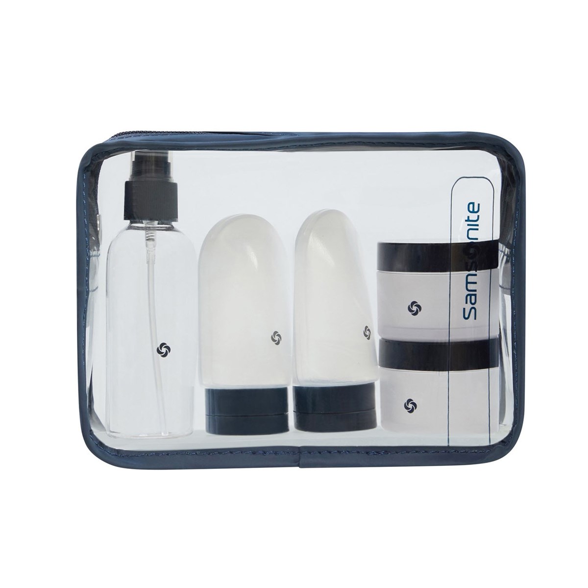 Detta necessärset är utformat för att göra det bekvämt och problemfritt att resa med vätskor. Den genomskinliga väskan med dragkedja innehåller tre 60 ml silikonflaskor och två 30 ml små burkar, perfekt för att uppfylla vätskereglerna under resan. Både flaskorna och burkarna är återanvändbara och lätta att fylla på, så att du kan använda dem resa efter resa.