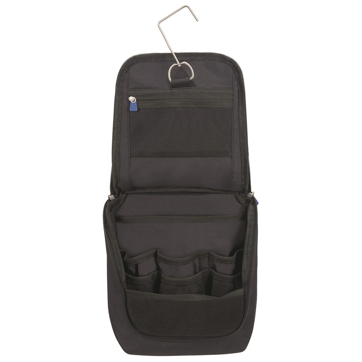 Snabbåtkomlig, bara öppna och häng upp den på dörren eller handduksstången. Rymligt huvudfack med dragkedja och 3 nätfickor. Med en urtagbar vattentät påse med blixtlås som kan användas i kabinbagaget.
