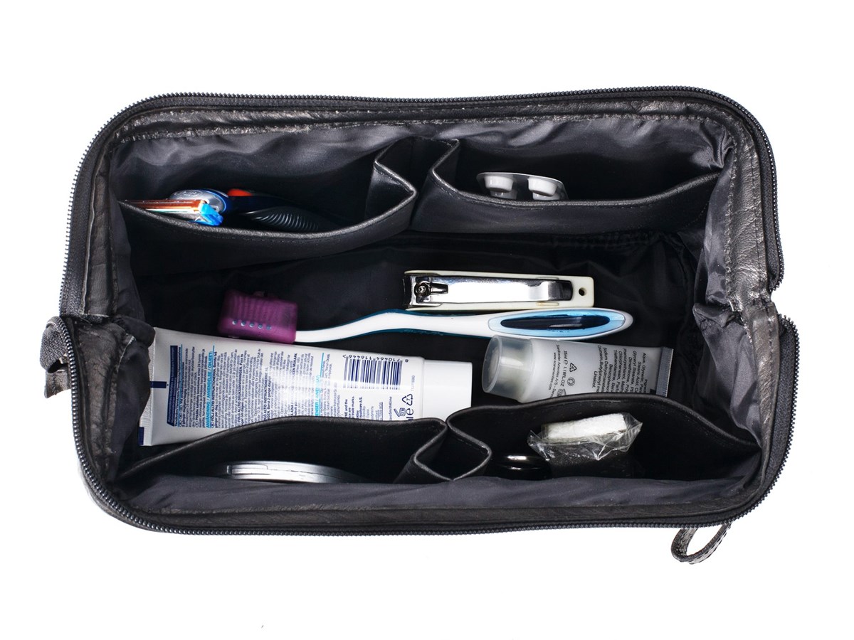 En praktisk och rymlig necessär tillverkad i snyggt buffelskinn. Mått: 120 × 280 × 150 mm.