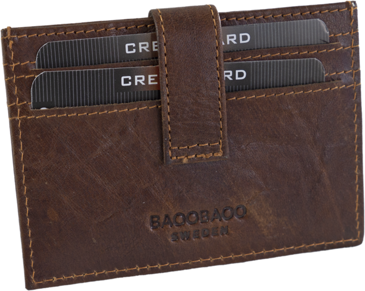 Baoobaoo Card Holder är ett kontokortsfodral med plats för minst 6 kort samt ett mittfack för kvitto eller någon sedel. Fodralet har insydd RFID-skydd som skyddar korten mot skimmning. En praktisk rem håller korten på plats. Mått: 100 × 80 mm.
