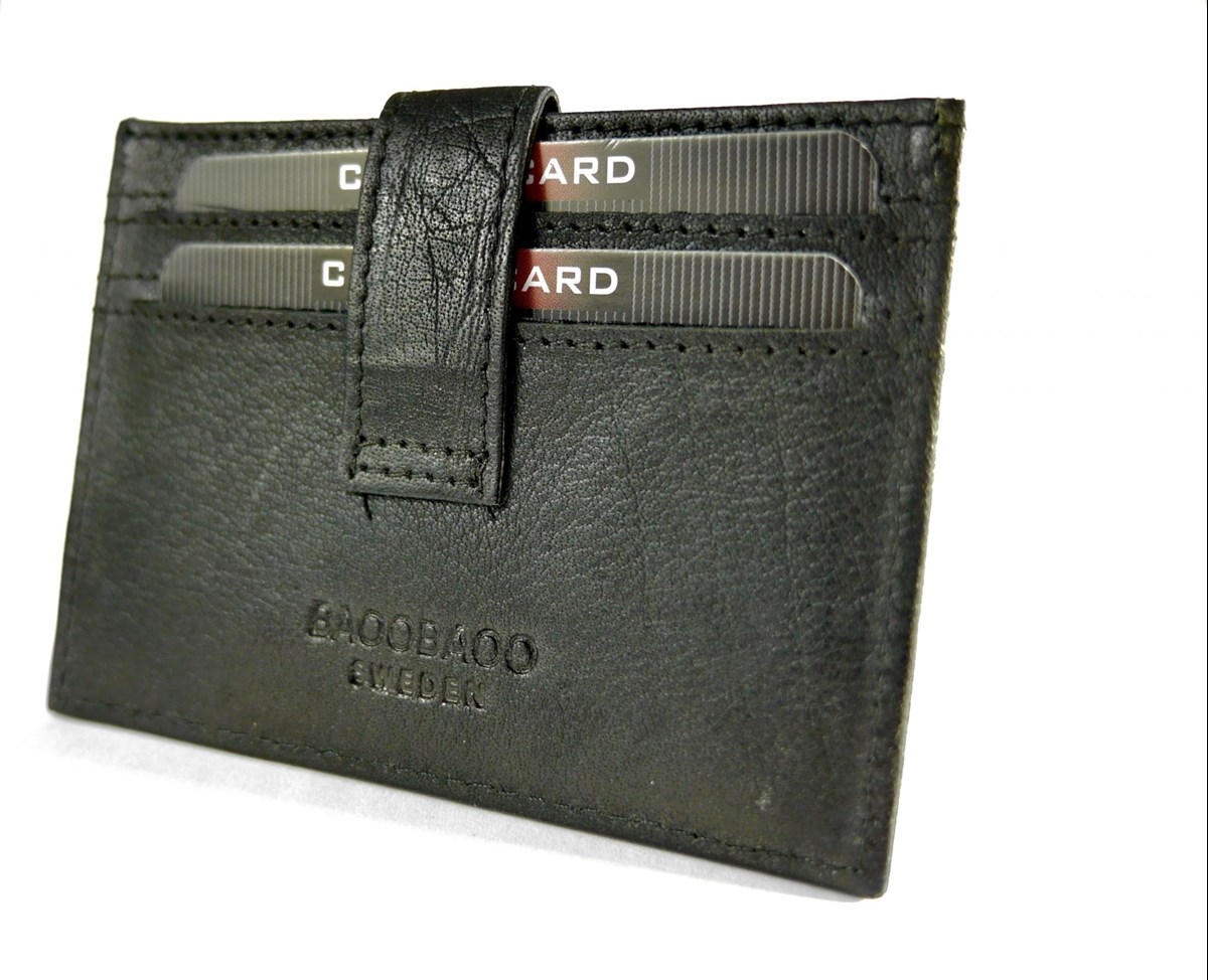 Baoobaoo Card Holder är ett kontokortsfodral med plats för minst 6 kort samt ett mittfack för kvitto eller någon sedel. Fodralet har insydd RFID-skydd som skyddar korten mot skimmning. En praktisk rem håller korten på plats. Mått: 100 × 80 mm.