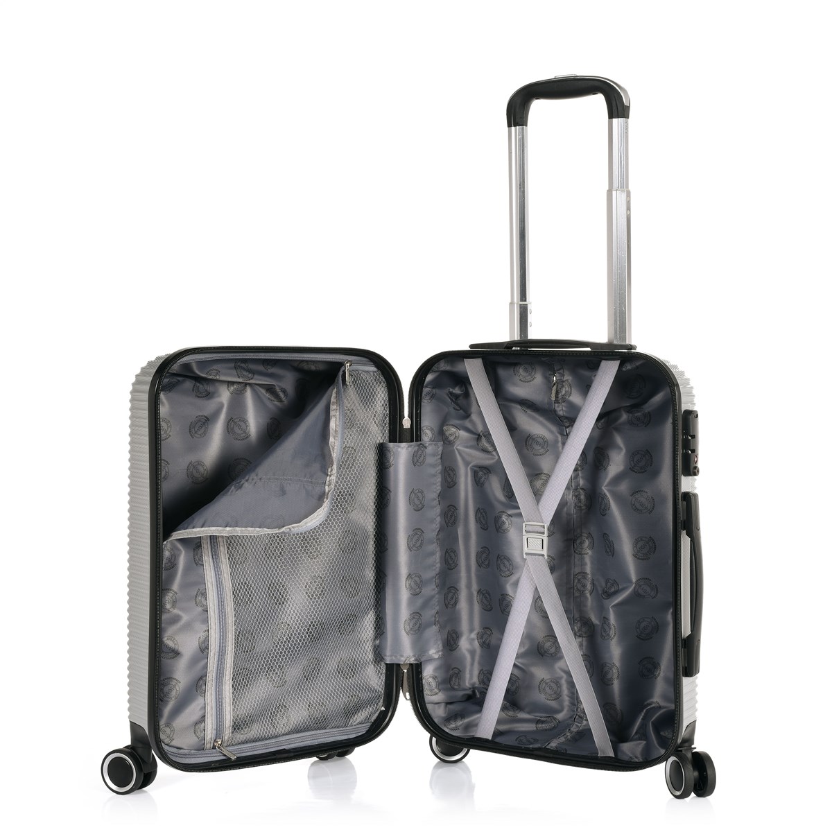Tillverkad av 70% recycled ABS-plast 4 dubbla hjul, tysta och lättrullade TSA-lås 2 års garanti