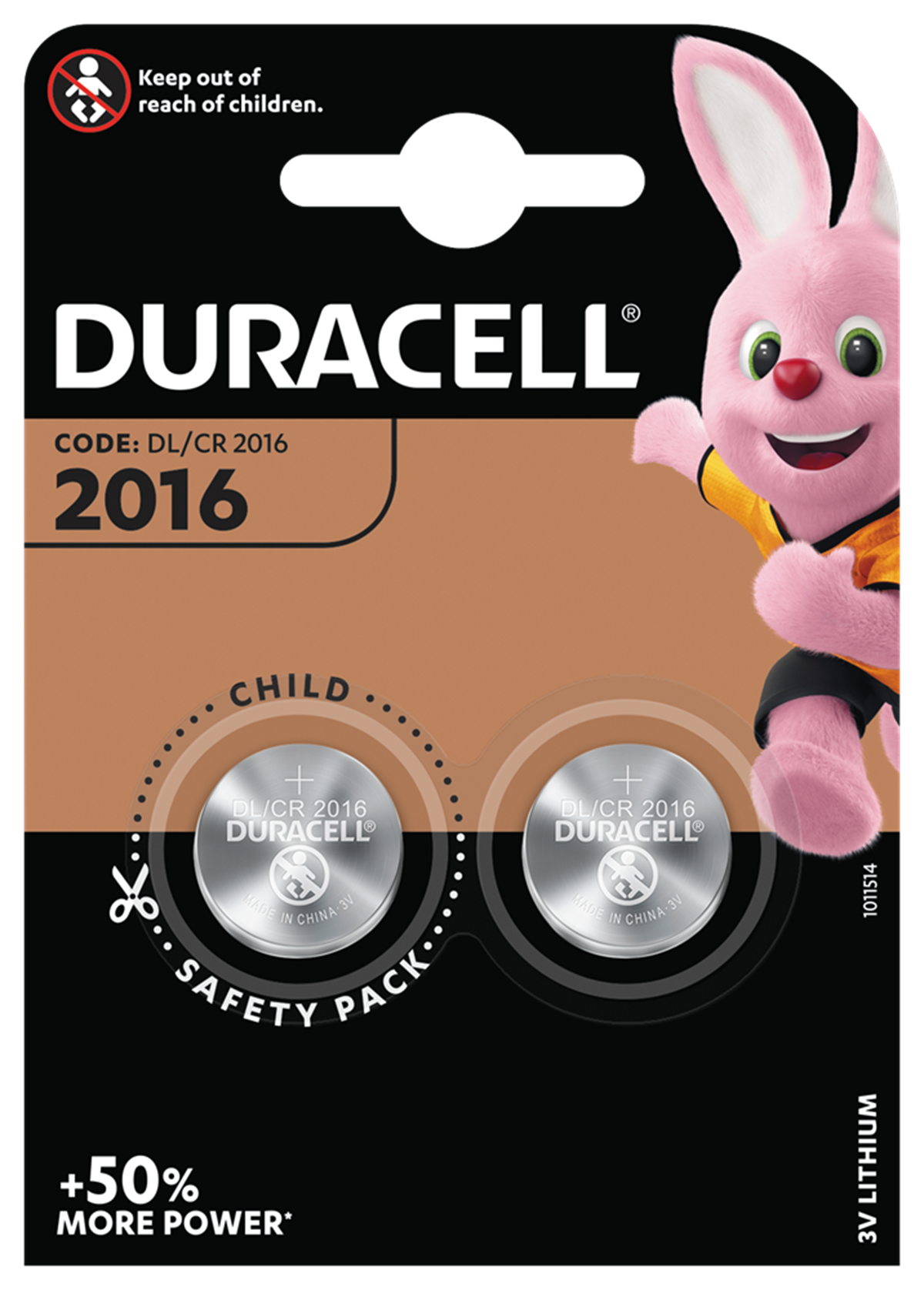 Knappcellsbatteri Duracell Litium CR2016 2/fp