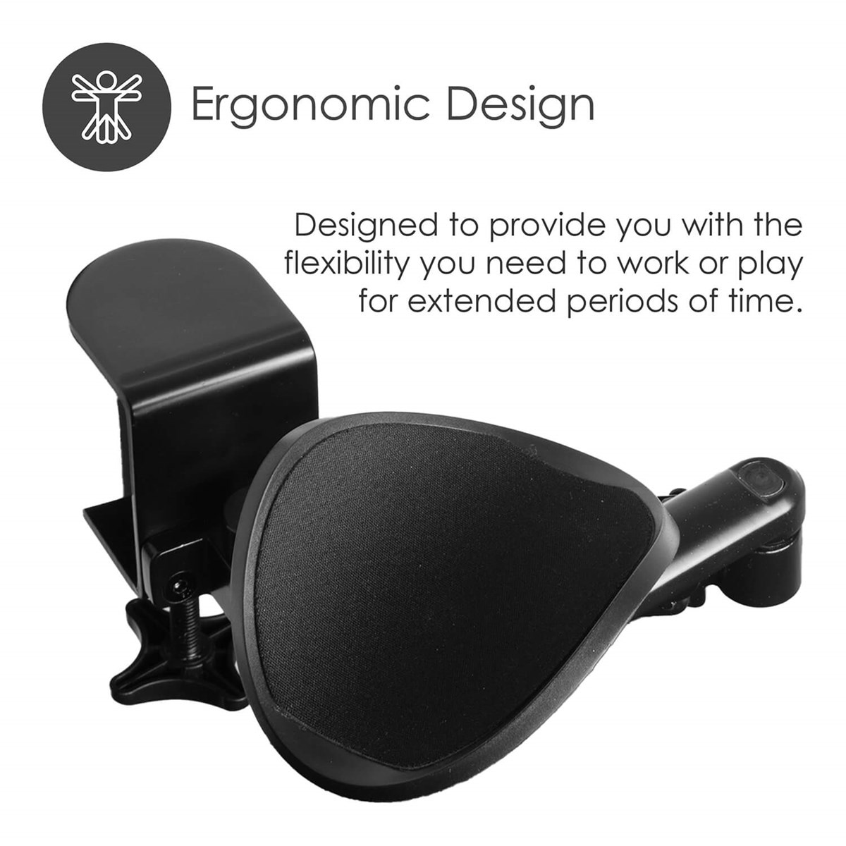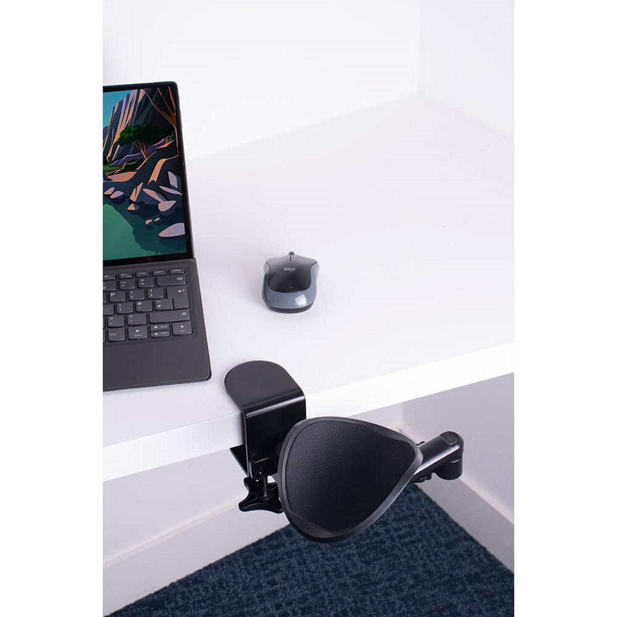Detta ergonomiska armstöd har utformats för att ge dig den flexibilitet du behöver för att arbeta eller spela under längre perioder. Mousemates ergonomiska design främjar en bra hållning och minskar belastningen på din armbåge och handled. Den justerbara klämman gör att du kan anpassa passformen till alla skrivbord och det vadderade stödet ger extra komfort under långvarig användning.