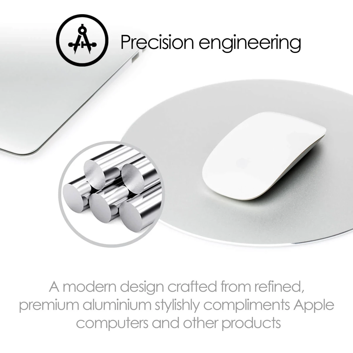 DESIRE2 Musmatta Premium Aluminium Rund presenteras i slank, raffinerad aluminiumfinish. Med en tjocklek på endast 2 mm är musmattan lätt att ta med sig, och den har en hållbar rund metallyta som tål långa arbetspass, samtidigt som den är helt vattentät, reptålig och är lätt att torka ren. Och den är fullt kompatibel med de flesta märkesbaserade trådlösa, och trådbundna möss.