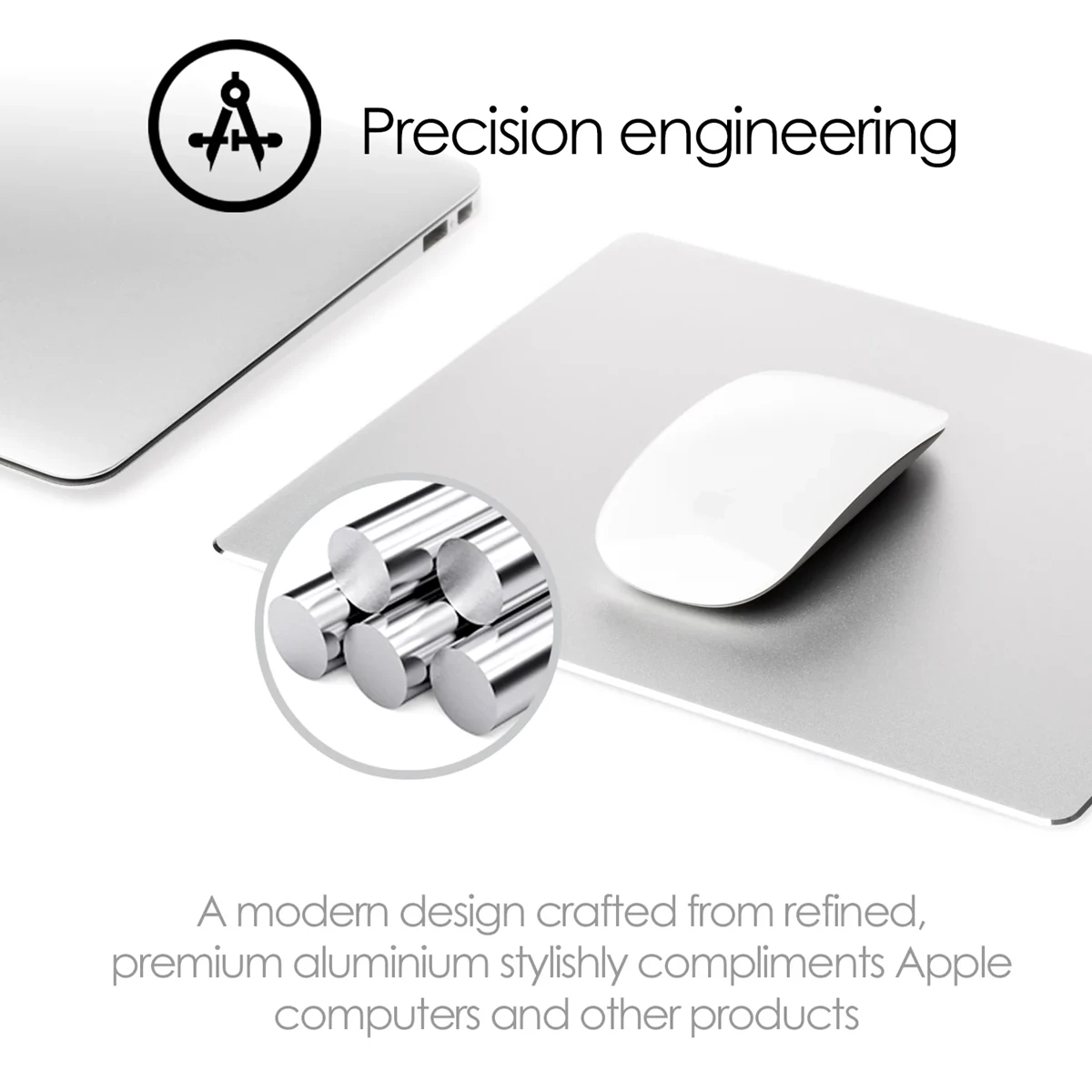 DESIRE2 Musmatta Premium Aluminium Rektangulär presenteras i slank, raffinerad aluminiumfinish. Med en tjocklek på endast 2mm är musmattan lätt att ta med sig, och den har en hållbar rektangulär metallyta som tål långa arbetspass, samtidigt som den är helt vattentät, reptålig och är lätt att torka ren. Och den är fullt kompatibel med de flesta märkesbaserade trådlösa, och trådbundna möss.