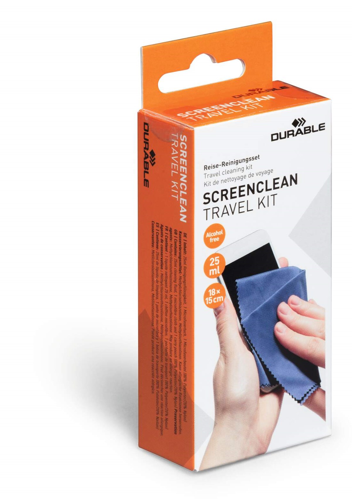 Håll surfplattor, smartphones och navigationsskärmar fräscha och i gott skick även på resande fot. Det här setet består av en liten smidig tygpåse där mikrofiberduk och flaskan med 25 ml alkholfri SCREENCLEAN spray förvaras. Lätt att ta med hela påsen!