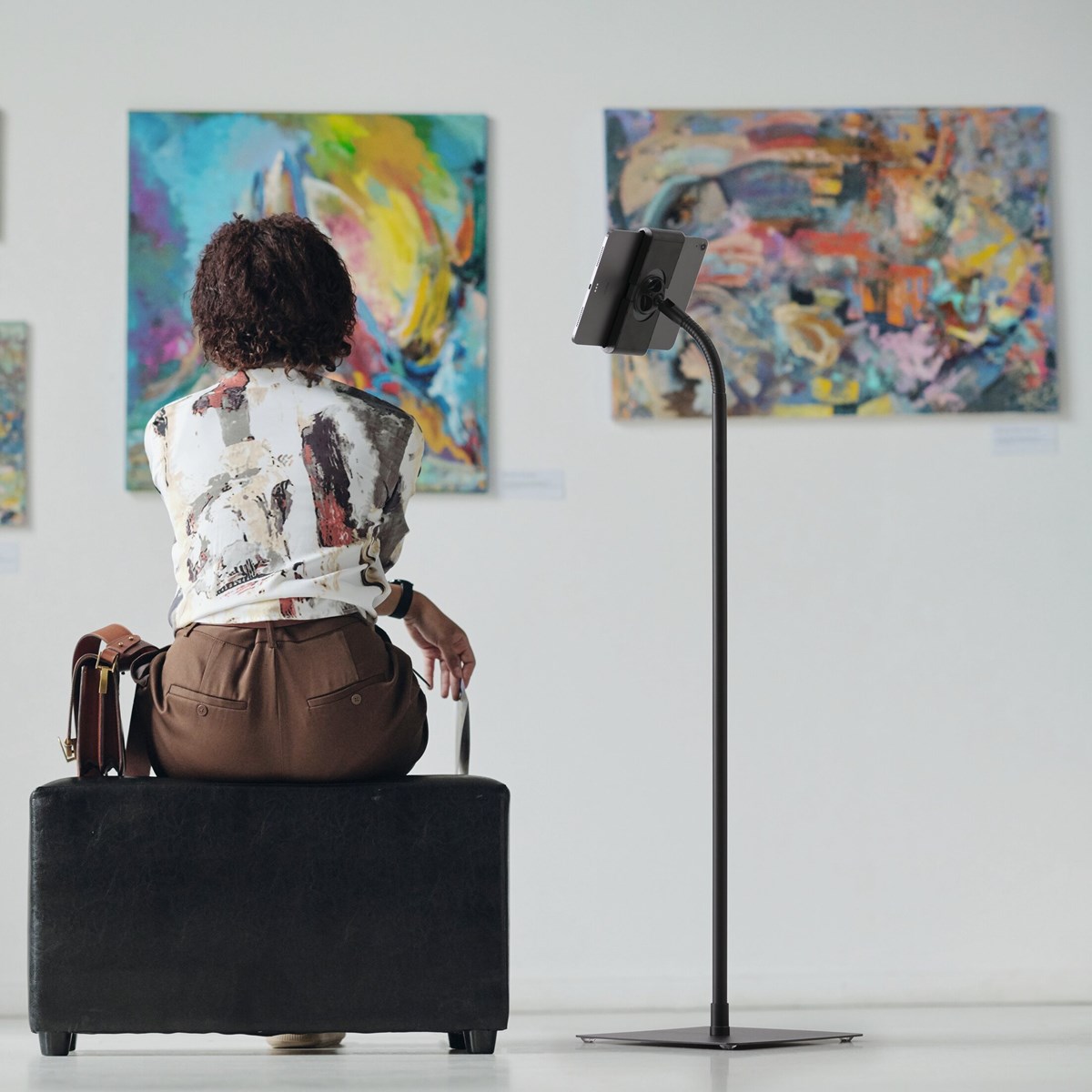 Detta robusta golvstativ är perfekt för informationsdelning och presentationer i butiker, receptioner och utställningslokaler.