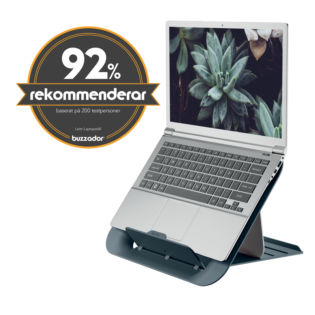 Leitz Ergo Cosy Laptopställ höjer skärmen på din bärbara dator för att öka din ögonkomfort och hjälpa till att förbättra din hållning. Tillverkad av 80% post-consumer återvunnen plast, produkten kan demonteras genom att metalldelar separeras från plast för 100% återvinning - hög kvalitet och lång livslängd för att hjälpa till att bevara jordens resurser. Att använda ett laptopställ främjar också luftflödet, vilket håller din laptops batteri och andra komponenter svala för att upprätthålla höga prestandanivåer. Med sin minimalistiska och färgglada design förbättrar det här eleganta laptopstativet både hälsa och välbefinnande genom att enkelt skapa den perfekta aktiva arbetsmiljön. Kombinera med andra Leitz Ergo-produkter för att skapa en inbjudande och flexibel arbetsplats som håller dig i rörelse hela dagen. Lämplig för bärbara datorer från 13" till 17", MacBooks som öppnas till maximalt 135 grader kan användas i höjdinställningarna 162 mm och 176 mm