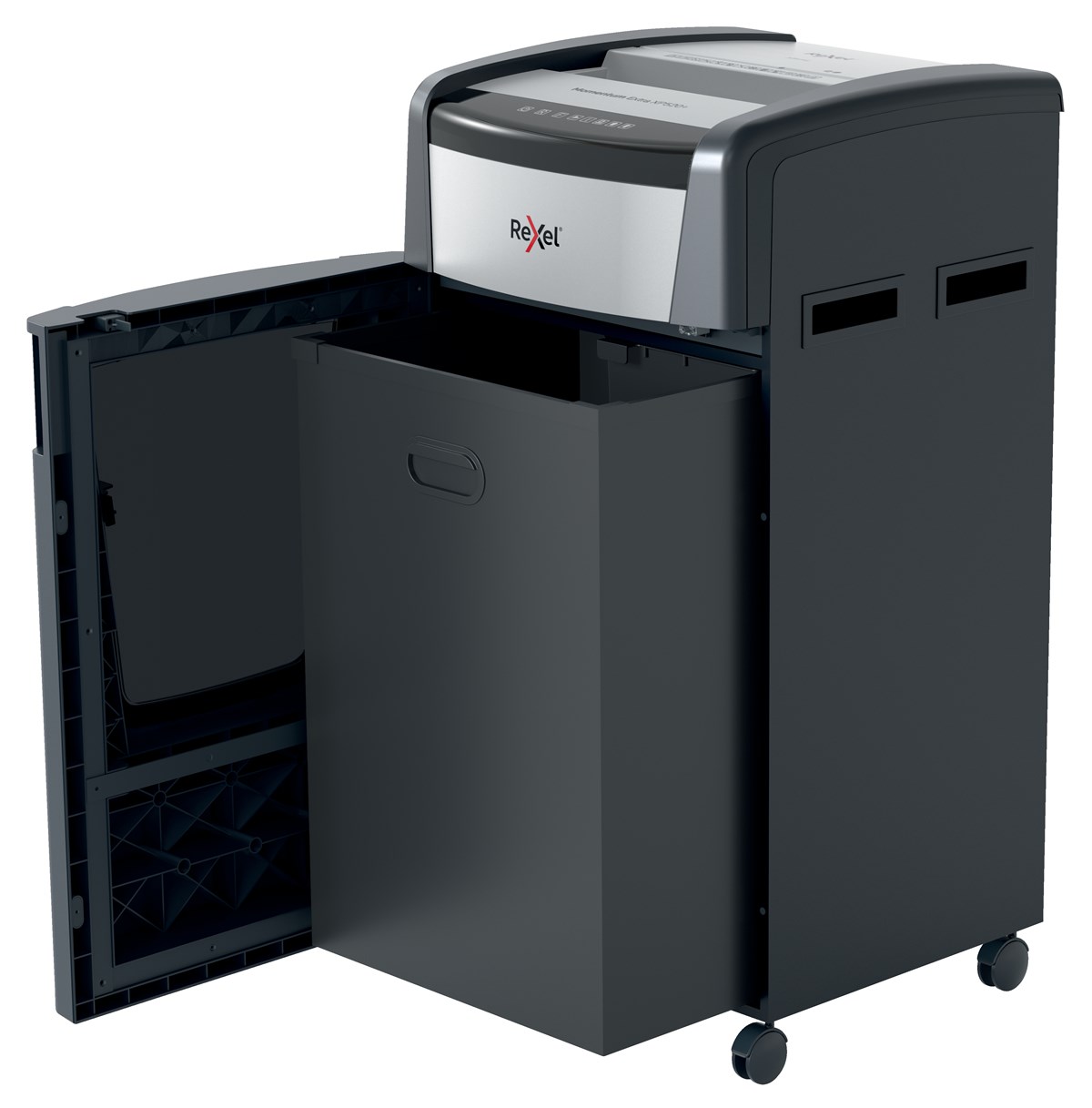 När makuleringsbehovet är stort eller bredd. Inmatningsbredd 310 mm. 55 dBA. Strimlar häftklammer, gem, plastkort och cd/dvd. JamFree-teknik förhindrar pappersstopp. Makulerar upp till 26 ark på en gång genom det manuella inmatningsfacket. Säkerhetsklass: P5 2x15 mm. Volym: 120 liter. Vi rekommenderar att man använder oljeark var tredje gång man tömmer dokumentförstörarens avfallsbehållare.