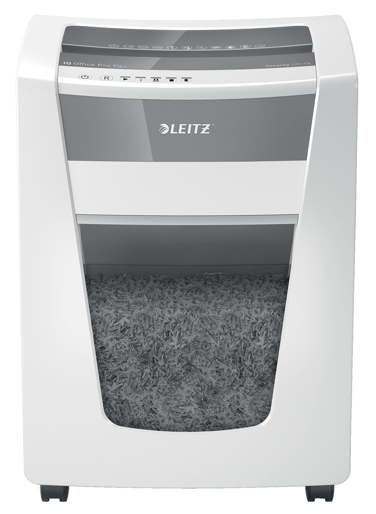 Dokumentförstöraren Leitz IQ Office Pro ger den ultimata stilen, prestanda och säkerhet. Modellen har högpresterande säkerhetsklassade DIN P6 säkerhet med extremt säker korsskärning (2 x säkrare än supermikroskärning). Perfekt strimling varje gång, perfekt för kontoranvändning. Den högsta nivån på säkerhet och utmärkt prestanda med denna trasselfria, tysta dokumentförstörare med lång drifttid. Skär ned 5 ark A4 i den generöst stora 30-liters avfallsbehållaren via enkel användning med touch-kontroller. Strimla längre med en ledande 4 timmars drifttid, för en fullständigt oavbruten makulering. Vi rekommenderar att man använder oljeark var tredje gång man tömmer dokumentförstörarens avfallsbehållare.
