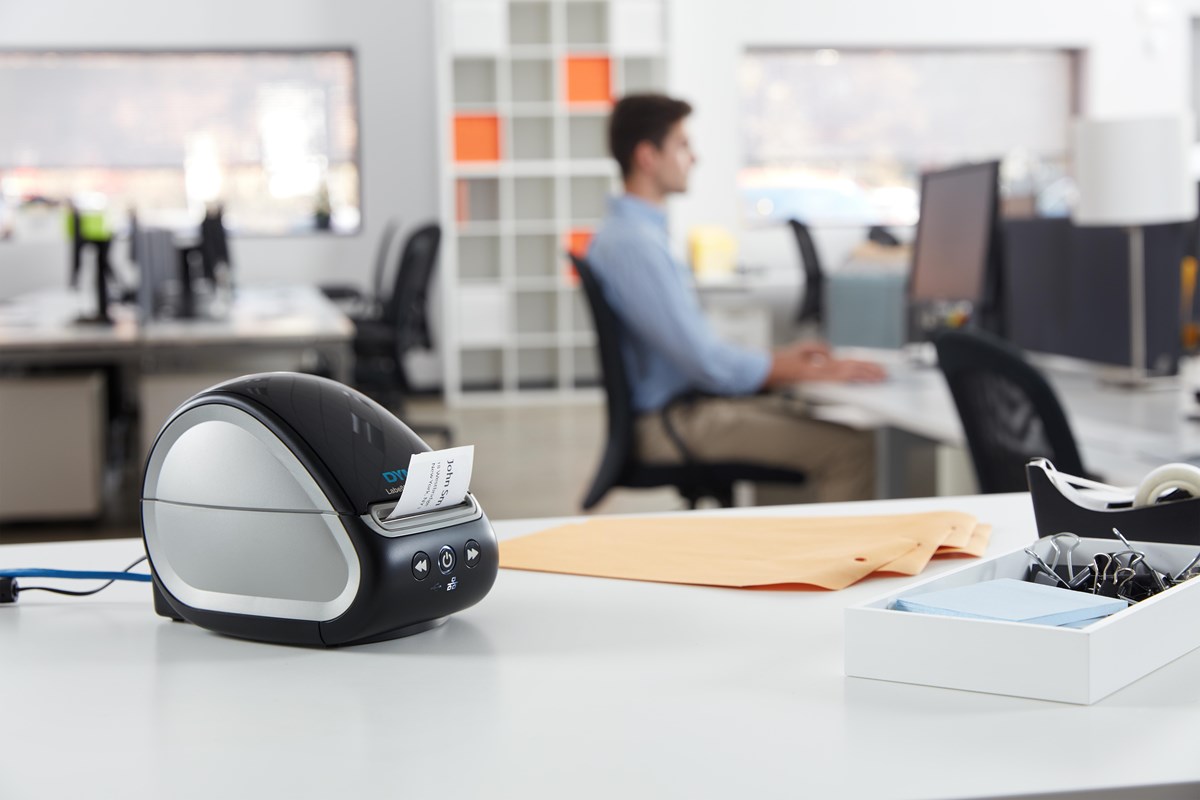 Skrivarens snygga, kompakta design och bärbara storlek gör att den enkelt passar in i alla moderna arbetsytor och den skriver ut upp till 45% snabbare än basmodellen LabelWriter 550. Skriver ut exakta etikettkvantiteter utan att du behöver brottas med arketiketter.