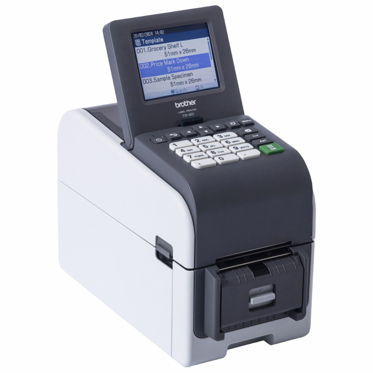 TD-2D bordsmodell har en rad specialfunktioner och högkvalitativa utskriftsupplösningar och är den perfekta etikettskrivaren för etiketter för detaljhandeln och etiketter för ingredienser som kan spåras i livsmedel – där du behöver skriva ut etiketter av hög kvalitet på alla platser.