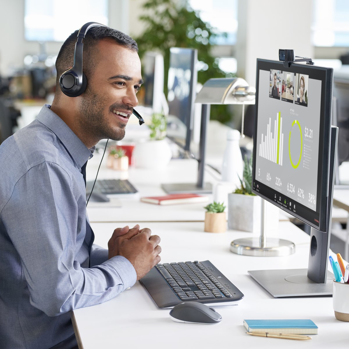 Videosamtal i högsta tillgängliga kvalitet med Full HD 1080p med sekretesskydd. Två integrerade mikrofoner tar upp ljud från alla vinkla. Spela in i dunkelt dimljus eller fullt direktljus. Inbyggt HD-autofokus och ljuskorrigering finjusterar videon till förhållandena. 2 års garanti.