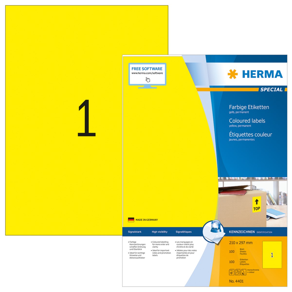 Etiketter Herma Special 210x297 gul 100/fp
