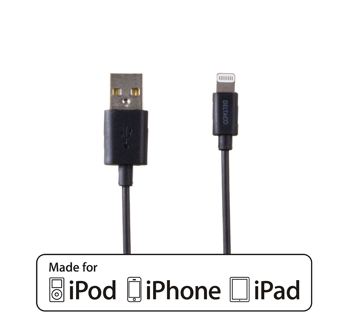 Laddningskabel Deltaco USB-A/Lightning svart 2 m