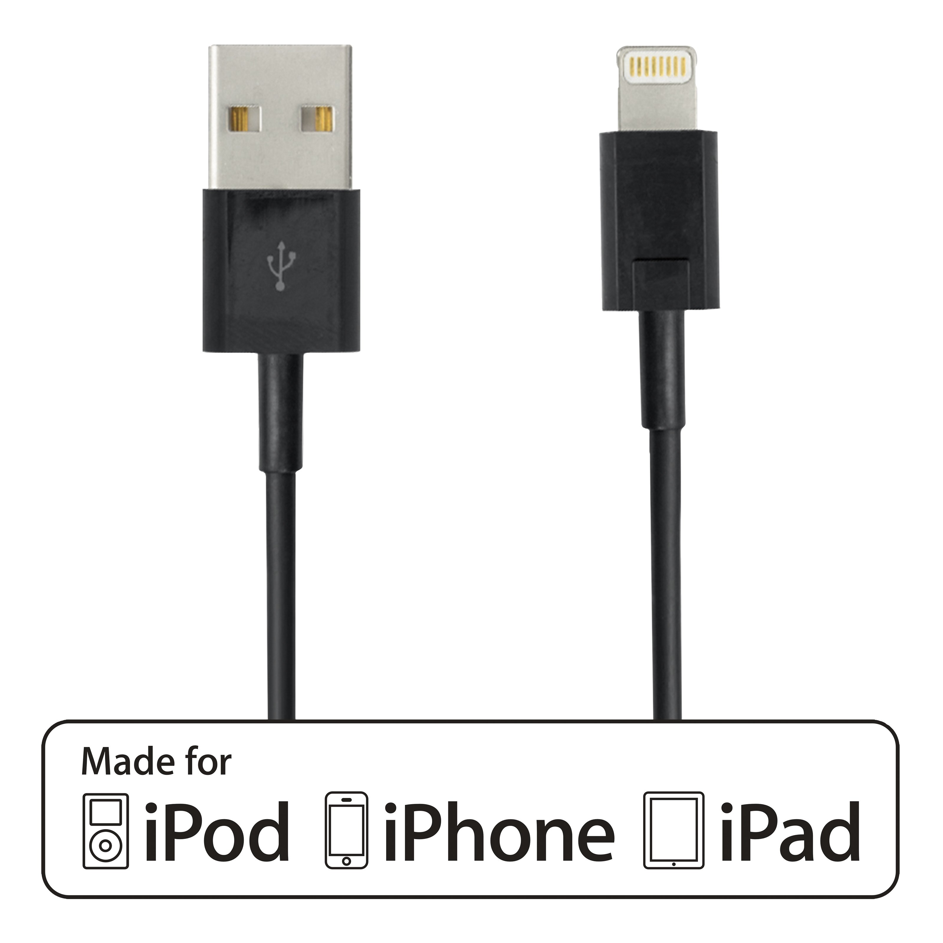 USB-A-kabel med lightningkontakt för att kunna ladda och synka din iPod, iPhone eller iPad.