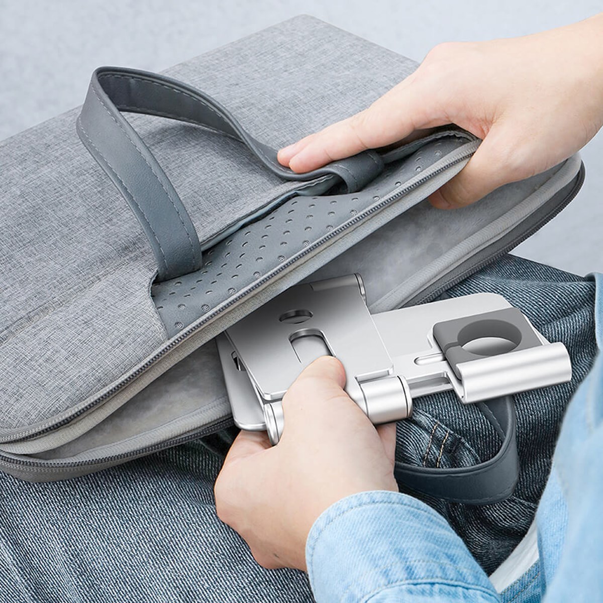 Vikbart aluminiumstativ för enkel förvaring Halkfria silikonfötter för säker laddning Kompatibel med befintliga Apple Watch- och iPhone-laddare Noggrant testad för att uppfylla höga krav