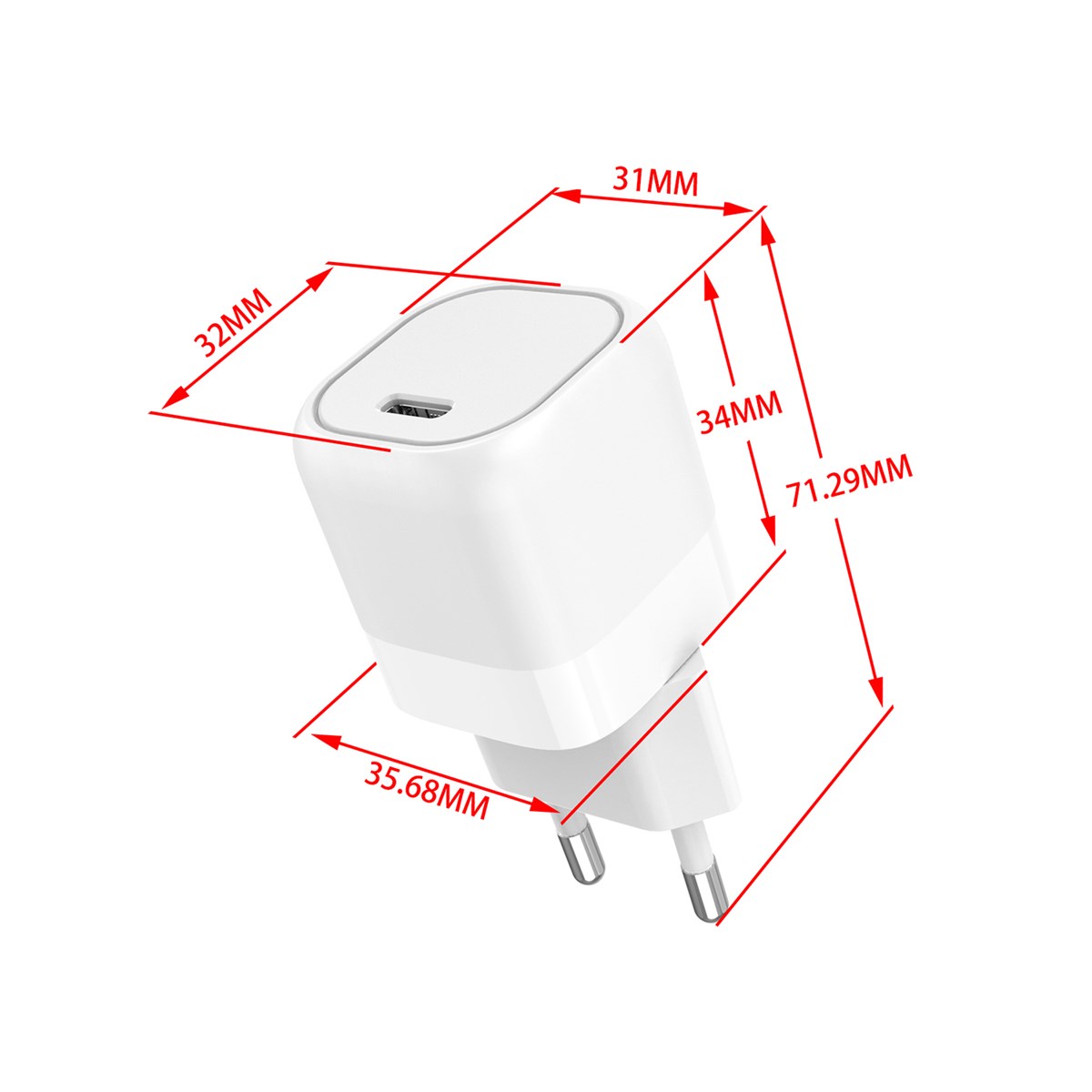 Reseladdare 220V 1xUSB-C PD/PPS 25W, för din bärbara dator, telefon och surfplatta.