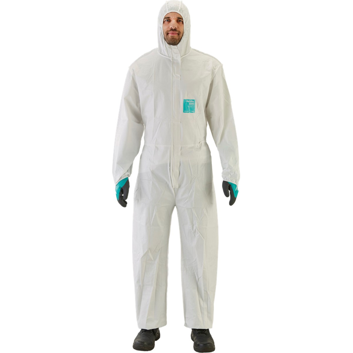 Kemskyddsdräkt AlphaTec 2000 Comfort 2000, typ 5,6 dräkt, med PE-laminerat material på framsidan och SMS-material på ryggen, för bättre andningsbarhet. Lämpar sig utmärkt för användning inom sprutlackering, glasfiberhantering, livsmedelsindustrin, läkemedelsindustrin och där det krävs en vätsketät framsida.