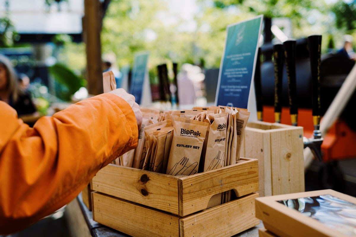 En hygieniskt säker besticklösning som är perfekt när du är på språng. Förpackade i FSC™-certifierat papper. Förpackningen innehåller servett, gaffel och kniv. Besticken är tillverkade av FSC™-certifierat björkträ och vaxade med veganvänligt karnaubavax – som är smaklöst och skördas utan att träden skadas – för en tillfredsställande och smidig måltidsupplevelse.