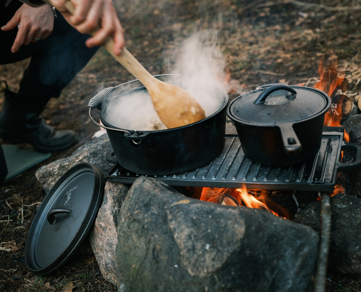 Satake Outdoor är en serie där matlagningen tar steget ut. Ut till uteköket eller campingplatsen, i skogen och på vandring. Vändbart stekbord/Grillplatta. Ett mycket användbart vändbart stekbord som kan användas på grillen eller direkt på öppen eld, men även direkt på spisen - inklusive induktionshäll. Ena sidan är försedd med grillränder som ger grönsakerna och köttbiten det snygga grillmönstret, samtidigt som råvaran lyfts upp någon milimeter och ger en perfekt tillagning.