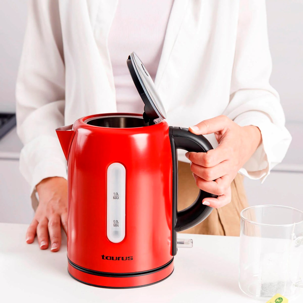 Taurus vattenkokare Selene Compact är den perfekta lösningen för att snabbt och effektivt koka vatten för te, infusioner eller matlagning. Med en effekt på 2200W kan du koka upp till 1 liter vatten på nolltid, vilket sparar både tid och energi. Den 360° roterbara basen gör det enkelt att använda vattenkokaren oavsett om du är höger- eller vänsterhänt, och den sladdlösa kannan gör det smidigt att hälla upp vatten i valfri behållare.